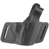 "The Black Widow belt slide holster is an ultra hi-ride carry with a thumb snap closure. Dual belt slots provide stability and the open muzzle design offers fits for same pistol models with differing barrel lengths. Compact profile and widely spaced belt slots allow the pistol to ride close to the body for both comfort and concealability."