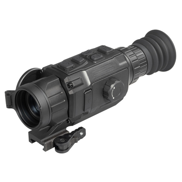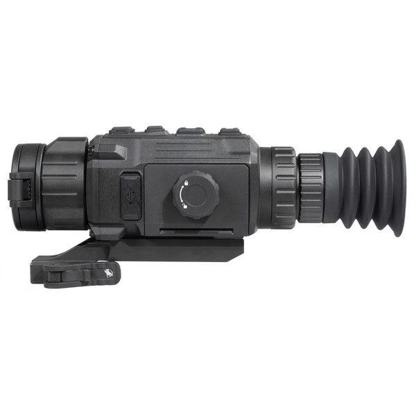 "The RattlerV3 25-384 pairs a 25 mm Germanium lens with an industry-leading sub-15mK thermal sensor. These technical specifications work together to provide a detection range of 1.1 miles. Large, sturdy buttons and a manual focus ring are designed to assist gloved fingers in cold winter weather, while the removable rechargeable NE-4400 battery offers one of the most robust and easiest-to-install battery systems on the market. The firmware package provides users with extensive customization options: on-board pitch scale, 10 brightness and contrast settings, warm and cold viewing modes, multiple color palettes, picture-in-picture, on-board video recording with sound, Wi-Fi hotspot, multiple zeroing profiles, shot-activated video recording, defective pixel repair, and hotspot locator. Also included is an American-made ADM mounting system."