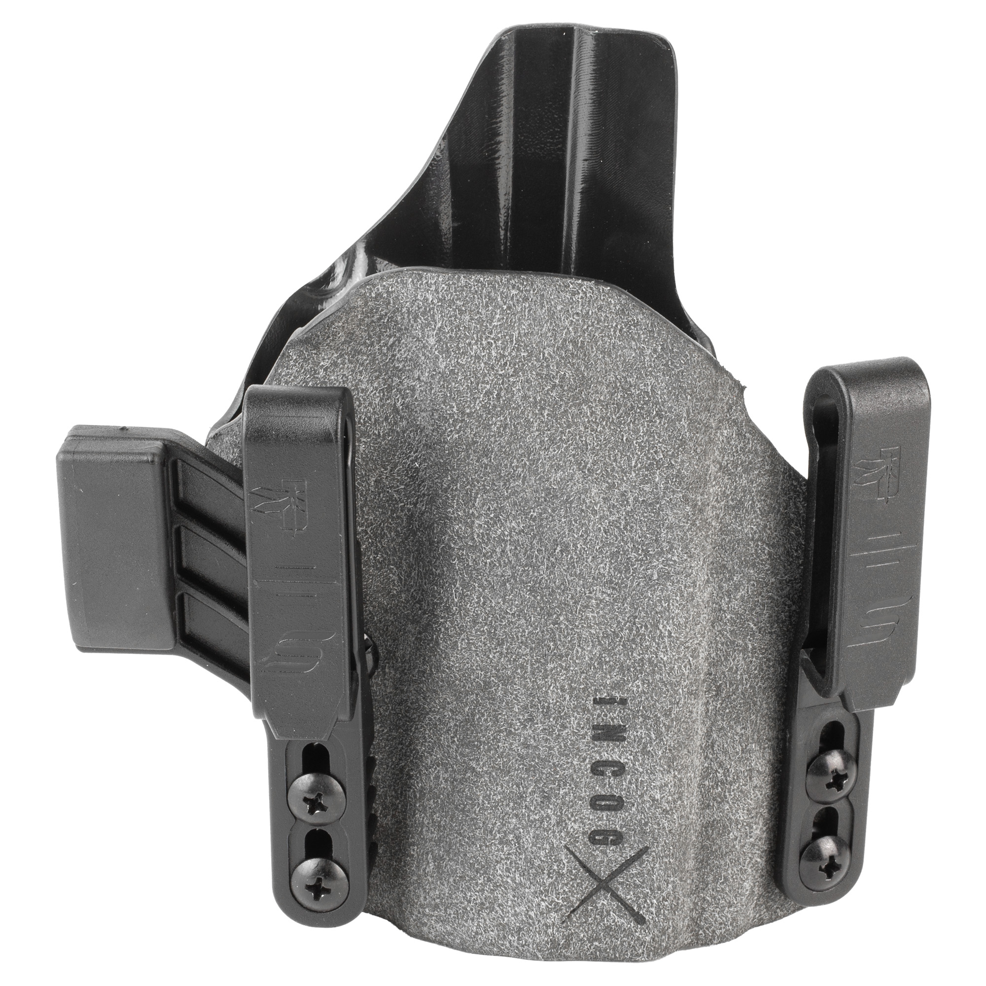 "The Incog X is compatible with any Red Dot Sight (RDS) capable of being installed on the firearm manufacturer's slide behind the ejection port (including mounting options using the firearm manufacturer's adapter plates). They tested dozens of popular RDS models including larger optics like the Trijicon SRO. The Trijicon SRO requires a slight repositioning of the upper flat clip to eliminate minor interference, but works flawlessly after adjustment. Boltaron construction provides form fitting passive retention. Suede exterior adds extra friction for secure IWB wear. Adjustable clip positioning allows for ride-height adjustment."