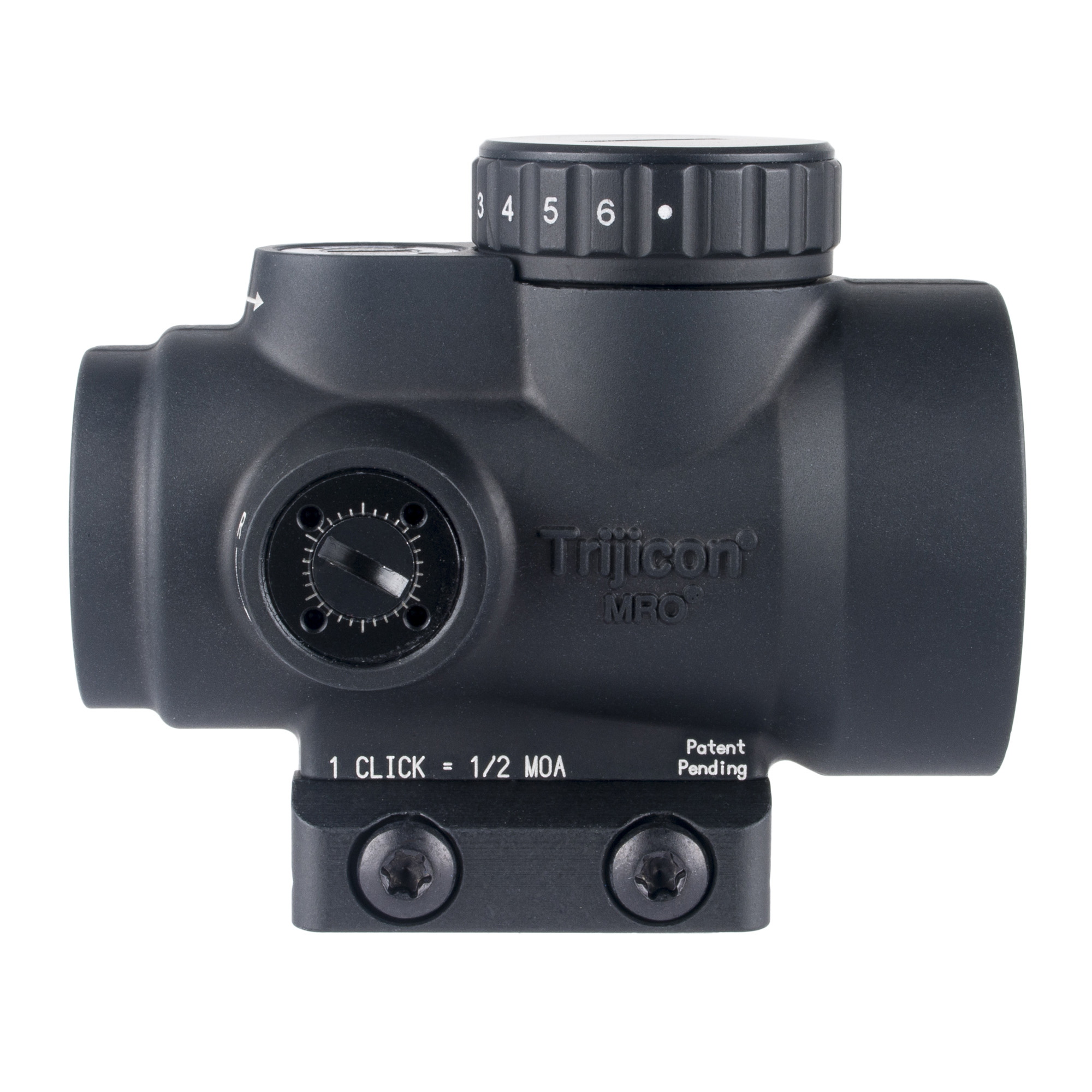 "The Trijicon MRO (Miniature Rifle Optic) SD is a sealed, miniature reflex sight intended for use on rifles, carbines, and shotguns to provide fast target acquisition. The large aperture and tapered light path maximize the viewing area and allow for better situational awareness and fast target engagement. Combine all this with the ambidextrous brightness controls, sub-flush adjusters, advanced lens coatings and the fully sealed, waterproof, hard anodized forged 7075-T6 housing, and you have the ultimate mini reflex sight on the market. The MRO SD features a re-engineered objective lens allowing for enhanced optical performance and magnifier compatibility. The MRO SD is also equipped with improved windage and elevation adjusters designed to maintain stricter zero retention requirements under drop and recoil."