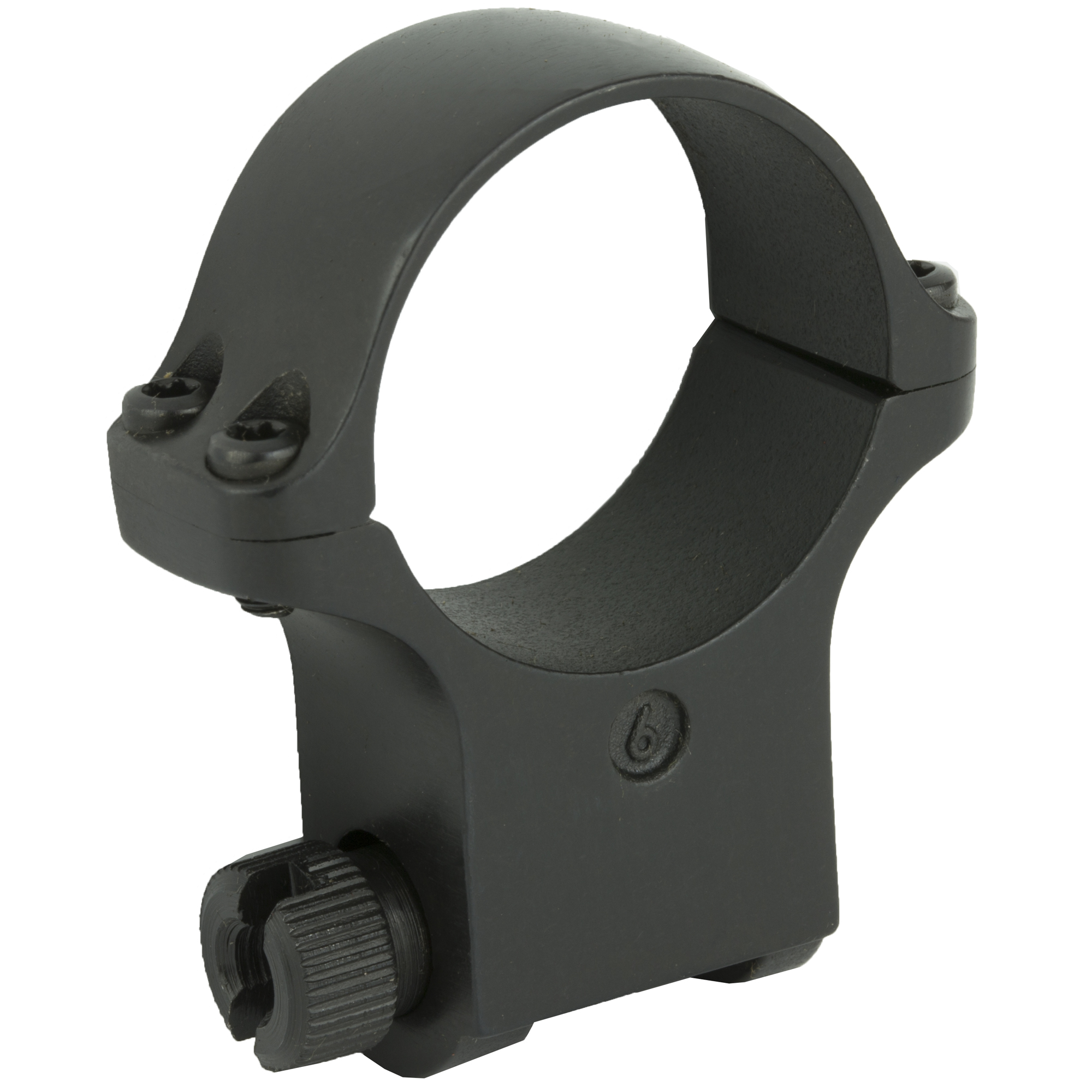 "Ruger 30mm extra high ring with matte blued finish, accommodates objective lens diameters up to 62mm."