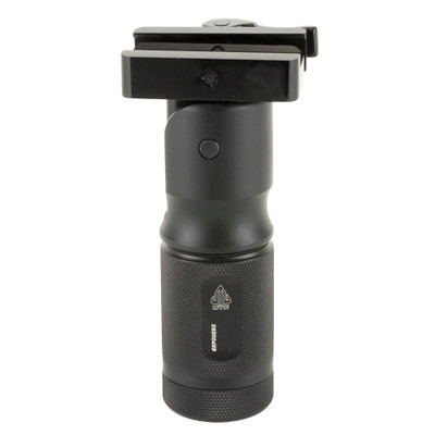"This UTG Model 4 Vertical Foregrip fits picatinny. It is a 5-position foldable foregrip with ergonomic finger grooves for a most comfortable grip. The practical side slide allows for ambidextrous use of the pressure pad insert and the clever end cap conceals the battery storage and controls grip mounting. It's picatinny mounting deck allows the foregrip to slide on and screw on tight."