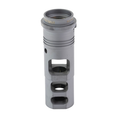 "Reign Over Recoil. SureFire SFMB muzzle brake suppressor adapters greatly reduce both recoil impulse and muzzle rise so that your weapon tracks straight back, keeping you on target for faster shot-to-shot recovery. Their proprietary Impulse Diffusion design minimizes side blast and rear-directed concussion effects. Precision machined from U.S. mill-certified heat-treated stainless steel bar stock and DLC-coated for extreme durability, they are available for a variety of weapon calibers and muzzle thread specs, and every SFMB serves as a rock-solid mounting adapter for SureFire's combat-proven SOCOM Series Fast-Attach suppressors."