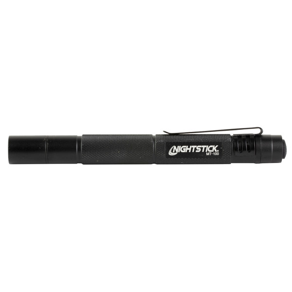 "This 2 AAA Mini-TAC light uses a deep parabolic reflector creating a tight, long-throw beam for distance illumination. With a water-resistant design, it is constructed from aircraft-grade 6061-T6 aluminum with a Type II hard anodized finish. The tail switch provides momentary or constant-on functionality. The light comes with a removable pocket clip. The MT-100 is powered by two AAA batteries (included)."