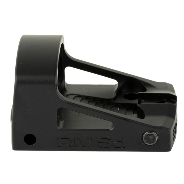 "An all new parallax free, Hard Dip Coated - Acrylic optic, which can withstand up to ten times greater shock impact than products using regular glass lenes. Unlike many competing products, the RMSd is designed without a red reflective filter on the lens to ensure minimal visual signature. The sight body is made from aerospace-grade aluminum and has an anodized matte black finish. Variable intensity drive circuit that senses target light levels and controls LED output giving optimum visibility of the dot against the target. The RMSd fits all mounts readily available for the SMS. The RMSd has side accessible battery drawer that allows you to change the battery without having to unmount the sight. The Glass Edition has an all new scratch-resistant ultra clear Glass Lens, and upgraded electronics with improved battery contacts with the same frame and low-profile that allows you to co-witness with standard iron sights."
