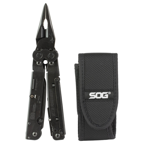 "The PowerAssist takes multi-tools to a new level. This is the first in the world to house not just one but two SOG Assisted Technology blades. Start to open the main blades, which are available when the main tool is closed, and S.A.T. takes over to complete opening. When not in use, these blades lock closed using their patent pending side release. Flip open the tool and experience the precision of the heavy-duty plier capability and large wire cutters. Smooth handle surfaces promote comfort on even the toughest jobs. Also includes Compound Leverage gear covers, heavy duty construction, V-Cutter, built-in crimpers and matte black finish for low reflectivity."
