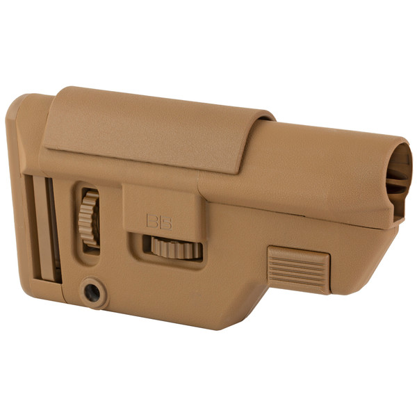 "The B5 Systems Collapsible Precision Stock (CPS), Medium. Building upon the venerable cheek profile of the B5 SOPMOD and Bravo stocks, the Precision stock incorporates an adjustable cheekpiece and buttpad while fitting Milspec carbine receiver extensions. Features internal tensioners, ambidextrous fixed and quick disconnect sling mounts, gross length of pull adjustment via pull down with lockout, underside M-LOK accessory mount, and color matched hardware. The CPS Medium fully collapsed will clear the M4 charging handle. Proudly made in the USA."