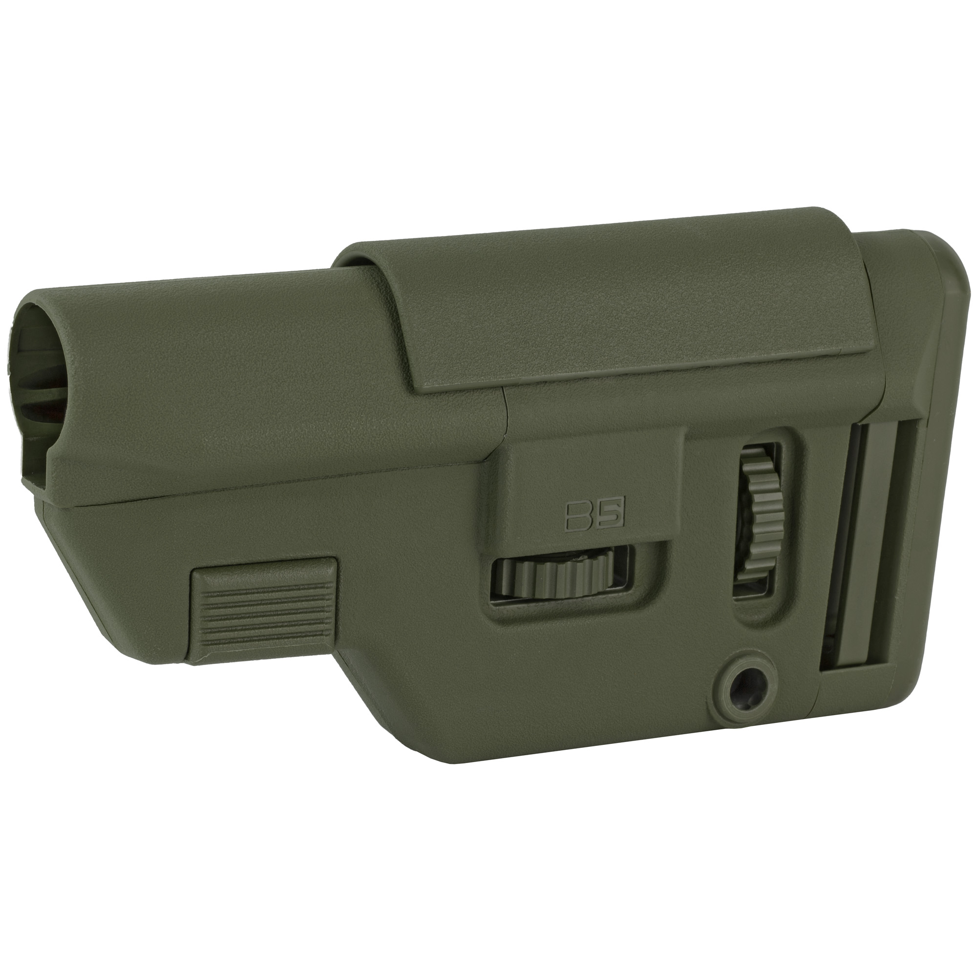 "The B5 Systems Collapsible Precision Stock (CPS), Medium. Building upon the venerable cheek profile of the B5 SOPMOD and Bravo stocks, the Precision stock incorporates an adjustable cheekpiece and buttpad while fitting Milspec carbine receiver extensions. Features internal tensioners, ambidextrous fixed and quick disconnect sling mounts, gross length of pull adjustment via pull down with lockout, underside M-LOK accessory mount, and color matched hardware. The CPS Medium fully collapsed will clear the M4 charging handle. Proudly made in the USA."