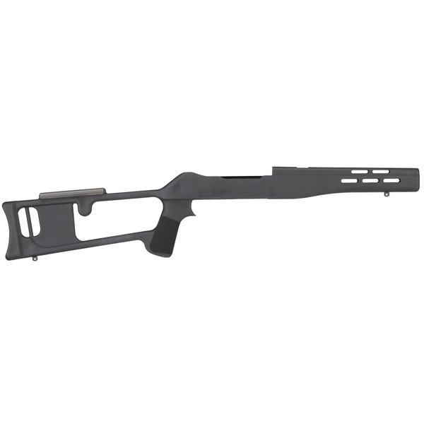 The Advanced Technology Int. Fiberforce Ruger 10/22 Thumbhole Rifle Stock fits most Ruger 10/22 rifles but will not accommodate rifles equipped with bull barrels. Its Dragunov Military design is lightweight and has a ventilated forearm and handguard. The DuPont(R) Extreme Temperature Glass Reinforced Polymer makes this stock scratch resistant and weatherproof. The sling swivel studs will accept any standard sling swivel. Made in the USA.